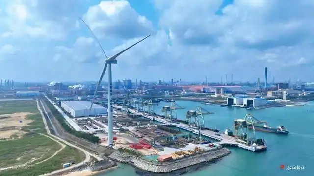 3月30日上午,湛江钢铁—华润电力分散式风电场项目2号风机在湛江钢铁成品码头顺利并网。该项目是国内工业园区大型分散式风电项目,依托湛江优质的沿海风能资源,所发绿电直供湛江钢铁厂区,也是国内首个将海上抗台风机型应用于沿海陆上风电的标杆工程。