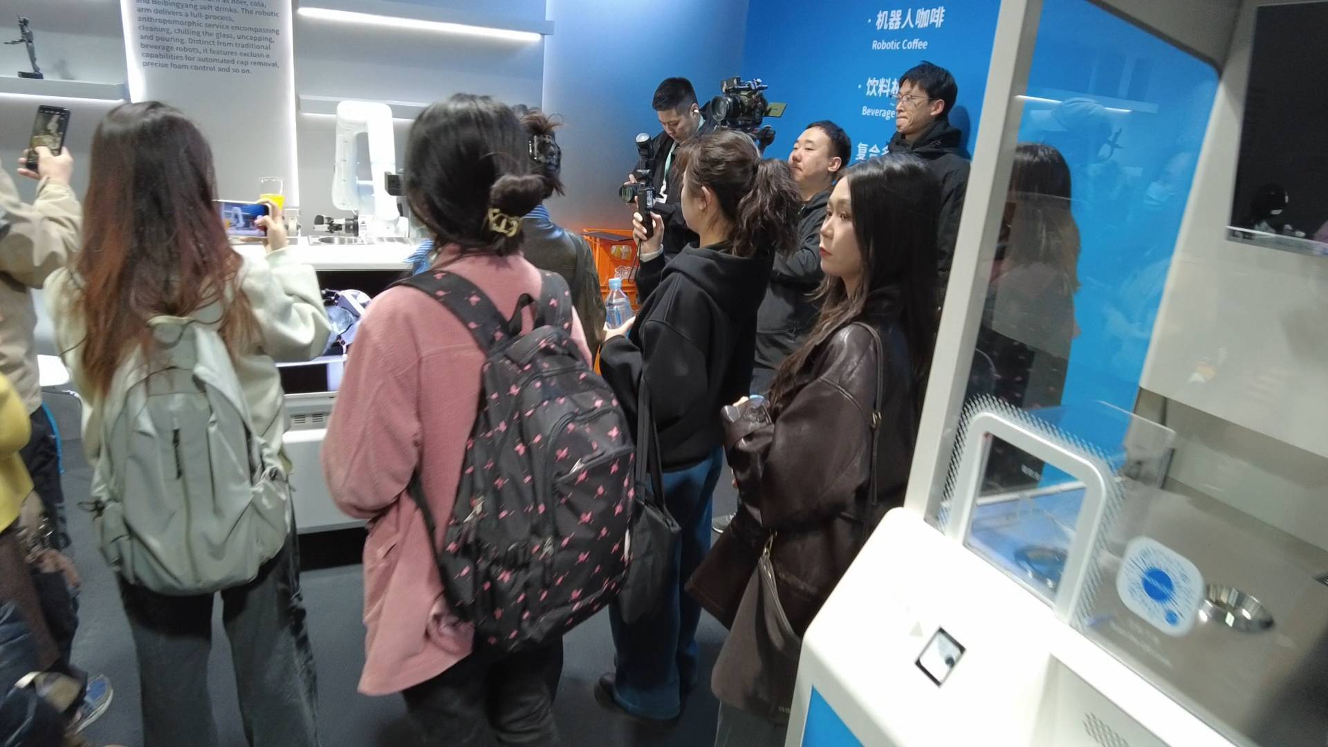 串糖葫芦、制作咖啡、饮品……走进主会场,一家由8个机器人主理的餐吧吸引了众多目光。
