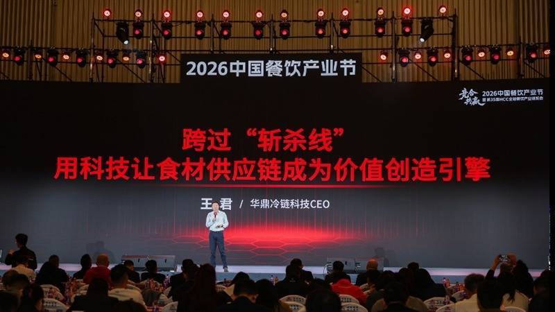 【大河财立方 记者 王宇】3月24日,在2026中国餐饮产业节暨第35届HCC全球餐饮产业博览会上,华鼎冷链仓配科技有限公司(以下简称华鼎冷链科技)CEO王君分享题为“跨过‘斩杀线’,用科技让食材供应链成为价值创造引擎”的演讲。